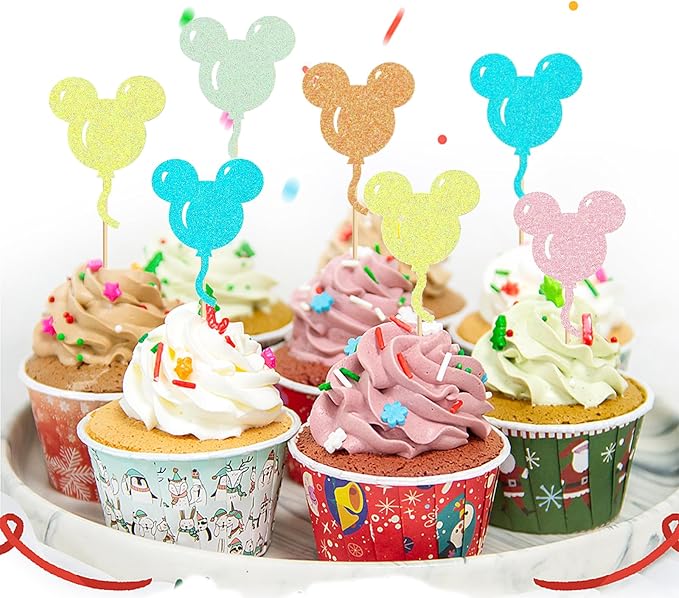 It comes with 30 Mickey Balloon toppers in a kit with blue, pink, yellow, and green colors. We love that you can throw this on top of any cupcake to make it more of a Disney theme.