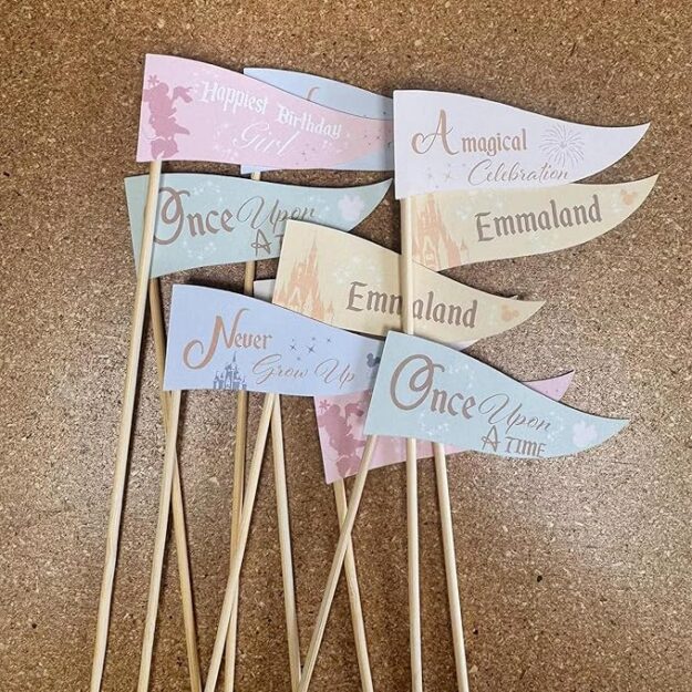 Grab these Theme Park Castle Birthday Pennant Toppers on Amazon for your party!