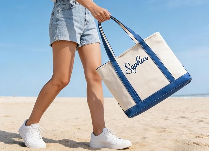 Spacious and Easy to carry, this bag is designed to hold daily essentials such as books, water bottles, tablets, lunch, towels, and travel items while remaining comfortable to carry by hand or over the shoulder. Plus, it can be personalized with a name or custom text like initials, a title, or a short phrase to personalize it.