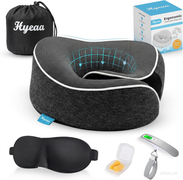 This 5-piece kit includes a 360° memory foam neck pillow, a contoured 3D eye mask, noise-reducing earplugs, a compact storage bag, and a even digital luggage scale.
