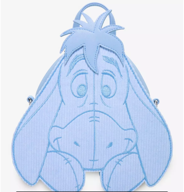 Made of a corduroy material, this mini backpack is embroidered with Eeyore facial details and includes removable backpack straps and measures in at 9″ W x 9″ H x 4″ D.