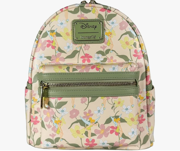 This Tinker Bell Floral Mini Backpack features the cutest all-over floral Tinker Bell design with sage green accents. There’s even more Tinks in the coordinating inner lining!
