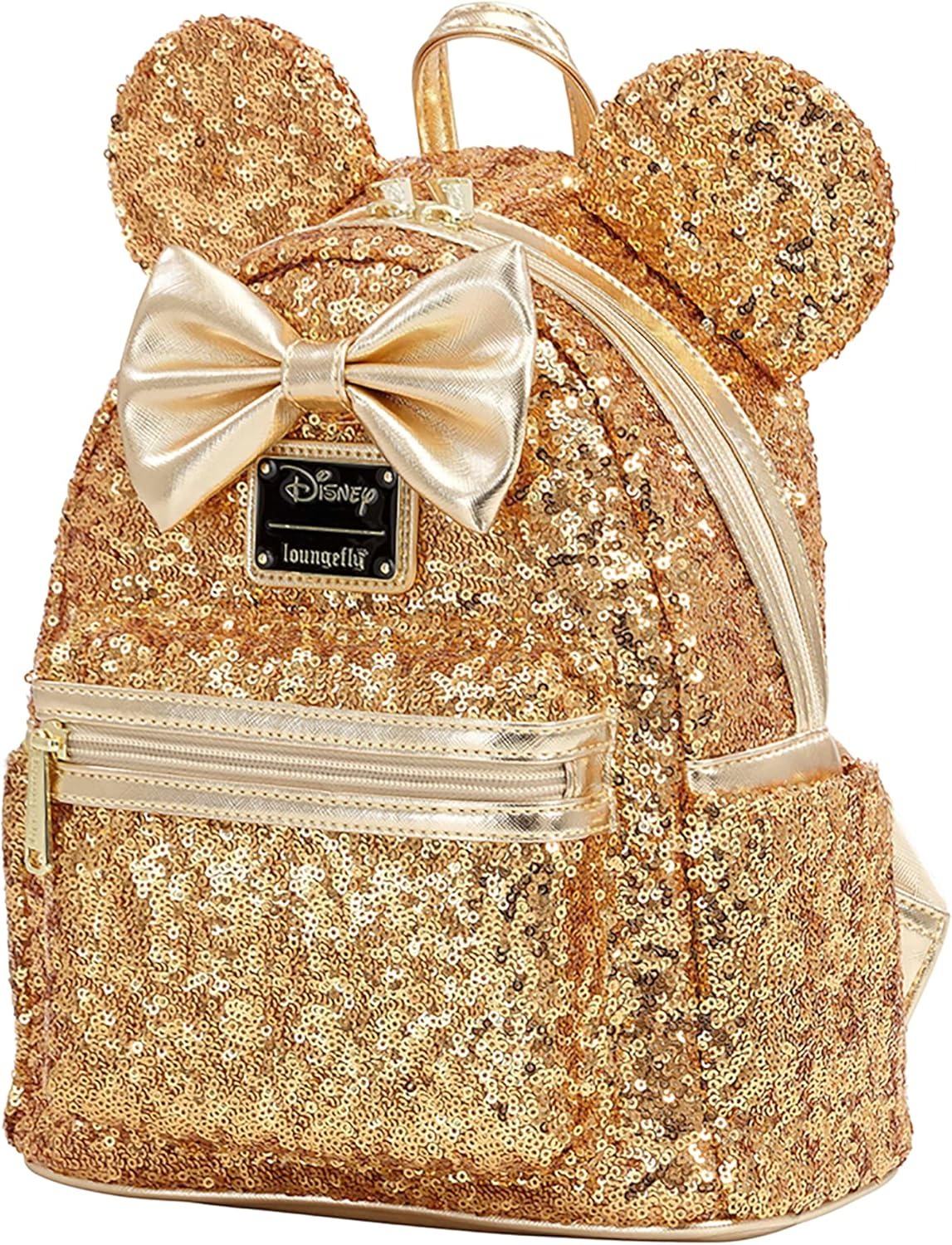 This Yellow Gold Sequin Minnie Mini Backpack has an all-over yellow gold sequin design! The bag is completed with her classic 3D ears and bow.