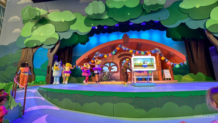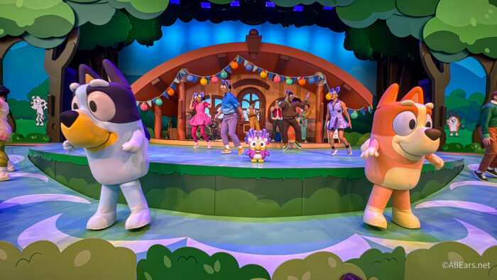 This show takes place in the Fantasyland Theater, which has been transformed into Bluey’s school. Fans can see some of their favorite characters as well as a group of actors performing music and some of the iconic games from the show, like Keepy Uppy!