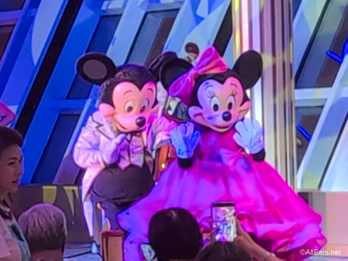 Of course, you can’t have old Hollywood without a few celebrity sightings. Not only did the room have a live singer on a stage, but you also got to see Mickey, Minnie, Donald, and Daisy in their fancy Hollywood outfits.