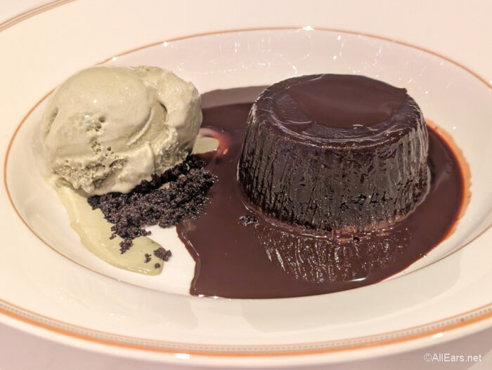 Our dessert was the Chocolate Molten Cake with Double Chocolate Sauce, Milk Chocolate Soil, and Matcha Ice Cream. It was perfectly created with a gooey and rich chocolate sauce inside that wasn’t overbearing. The matcha ice cream really helped balance the richness of the cake. It had a lovely green tea flavor that complemented this dessert beautifully.