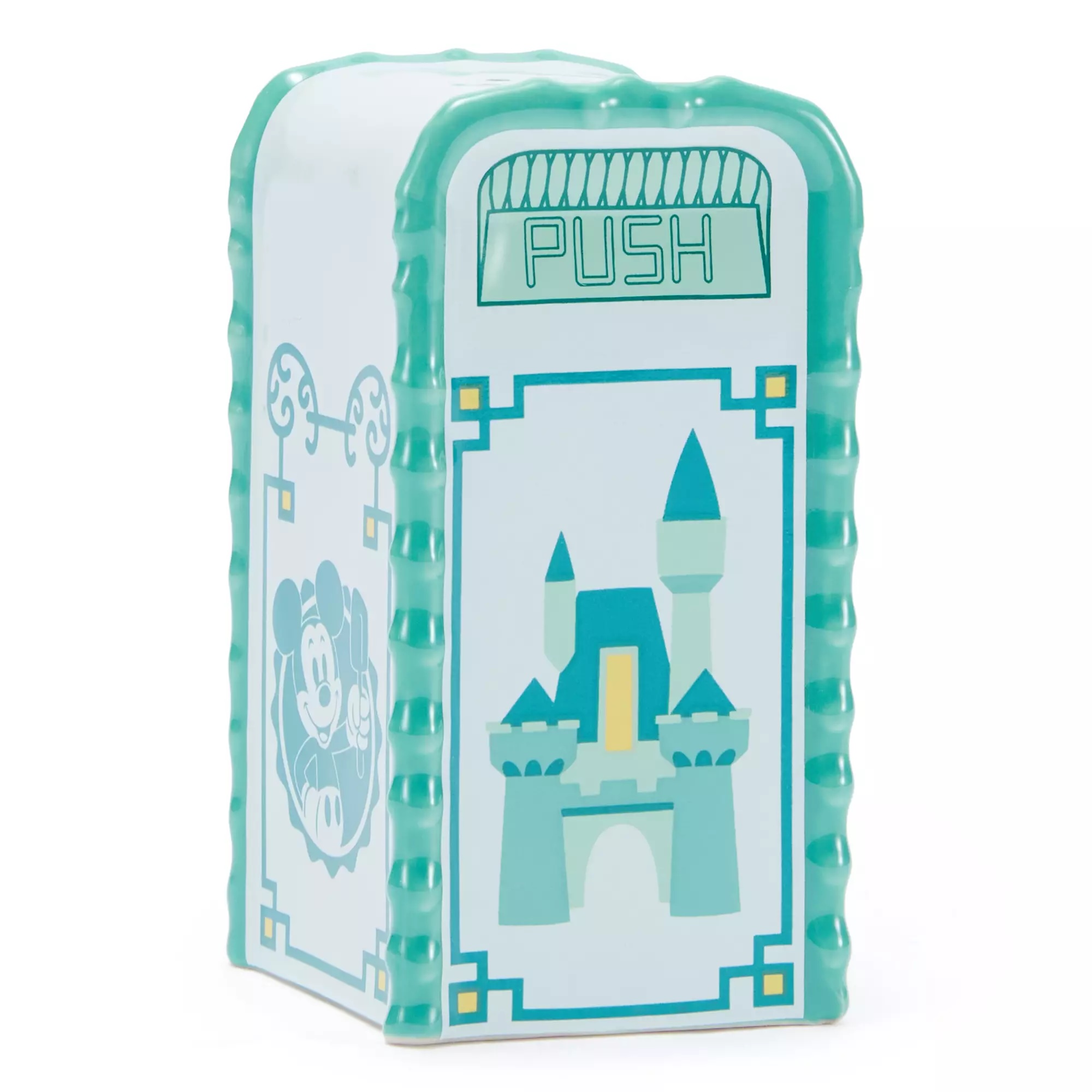 Mickey is pictured alongside the Fantasyland Castle in the detailed design, with ”Push” on either side of the trash can. Each shaker is sold separately, so if you’re wanting a set, you’ll need to buy two! You can buy two of this teal color by clicking the button below, but the shakers are also available in…