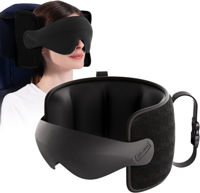 The Air Neck Free Travel Pillow has near-perfect reviews thanks to its mask function. This pillow comes with a seat strap and a 3D eye mask to help keep your head in a comfortable resting position. The mask completely blocks lights from all angles and lets you drift off during a long trip.