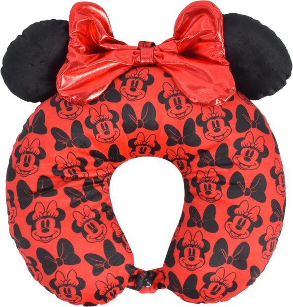 This Minnie Mouse Travel Neck Pillow comes in a red and black foam polyester material, and even features the iconic Minnie Mouse ears and bow! There are even Minnie Mouse faces and bows in the all-over design! This pillow is praised for its comfort and accessibility thanks to its snap closure.