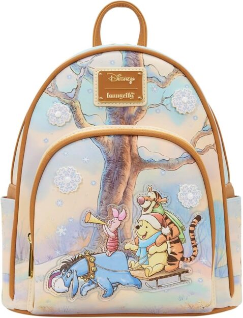 First up, we have the Loungefly Disney: Winnie the Pooh and Friends Sledding Mini-Backpack, Amazon Exclusive, which is bringing the kind of cozy storybook chaos the Hundred Acre Wood does so well. This one feels like the visual equivalent of hot cocoa, a fuzzy blanket, and one friend yelling, “THIS HILL LOOKS SAFE ENOUGH,” moments before everyone tumbles into a shrub.