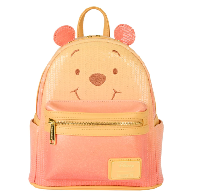 Now let’s talk about the Loungefly Winnie the Pooh Sequin & Glitter Mini Backpack, which is for the people who looked at Winnie the Pooh and thought, “Yes, but what if he served disco honey?” Excellent instinct. No criticism here.