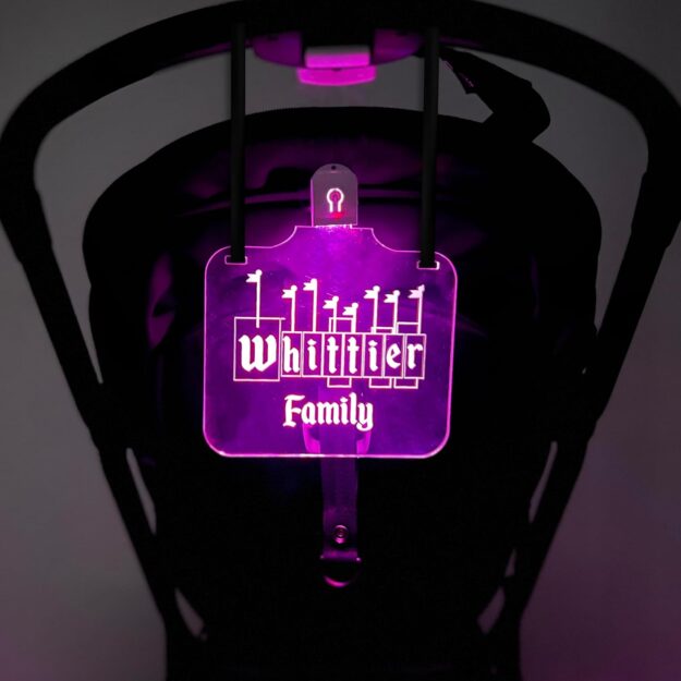 Are you worried about telling your stroller apart from others? This Personalized Night Light Stroller Name Tag will solve that problem.