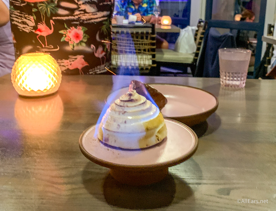 We’ve tried their Baked Florida before, since it’s one of their signature desserts. It’s a frozen key lime pie with raspberry gelée and flambéed meringue, and it’s flambéed tableside! We loved this take on key lime pie — the rum flavor balanced out with the tartness of the key lime and the creaminess of the meringue. The key lime was sweet and tart, and the raspberry complemented that well.