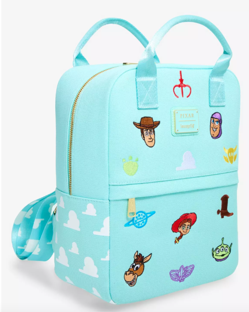 This mini backpack features the classic cloud print from Andy’s room, embroidered favorite characters, and side pockets! The straps are adjustable.
