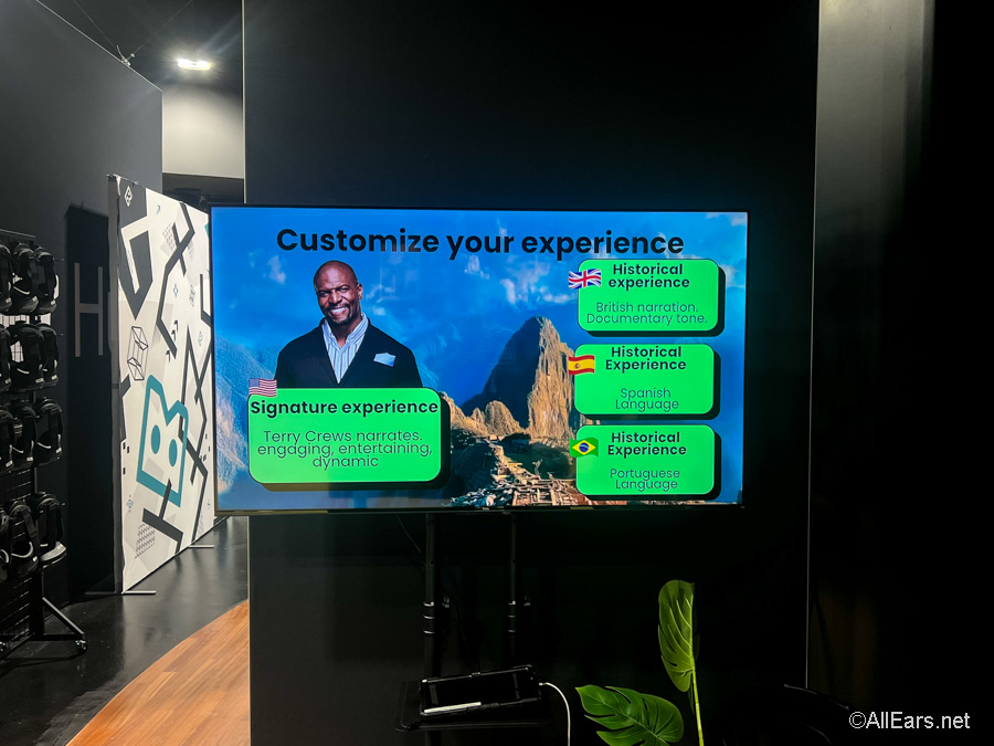 So this is an elevated virtual reality experience that lasts around 45 minutes. Tours can be done solo or with a group of up to six people. You can even customize your experience in English with Terry Crews narrating, British narration with a documentary tone, Spanish, and Portuguese. In the English version, Teri, the AI robot, is your tour guide, as voiced by Crews. You also have Larry the llama as your companion.