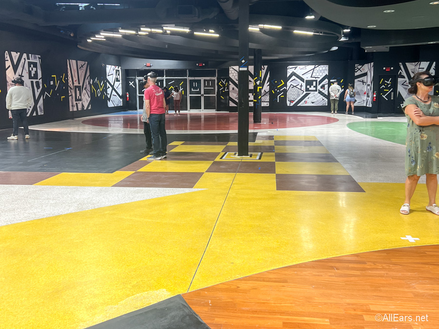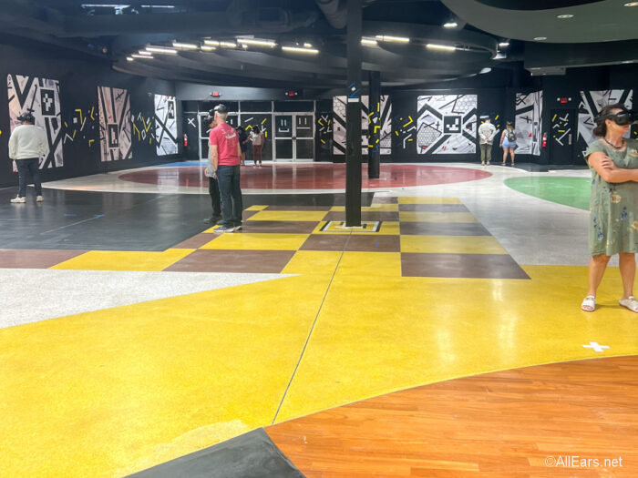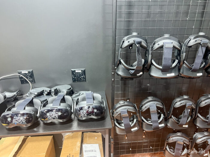 Once you’re ready, you’ll put on your VR headsets. There is a team member available to make sure that the headsets fit comfortably and that you can see everything clearly. There’s a blue dot you’ll see in the headset that will help make sure that your eyes are in focus and everything is within the frame.