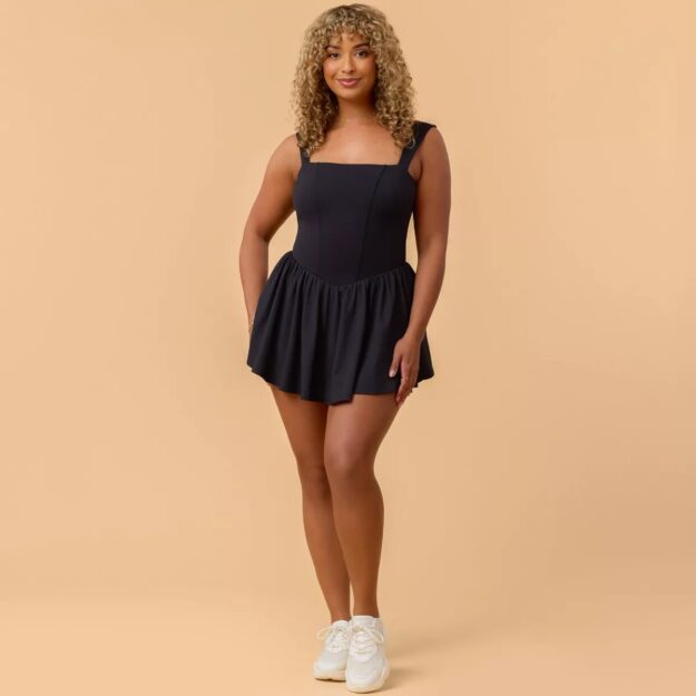 The collection includes this adorable Women’s Princess Bow Back Dress that comes with its own pair of shorts…with POCKETS. It also has a flattering drop V-shaped waist and a flirty circle skirt that sits longer in the back.