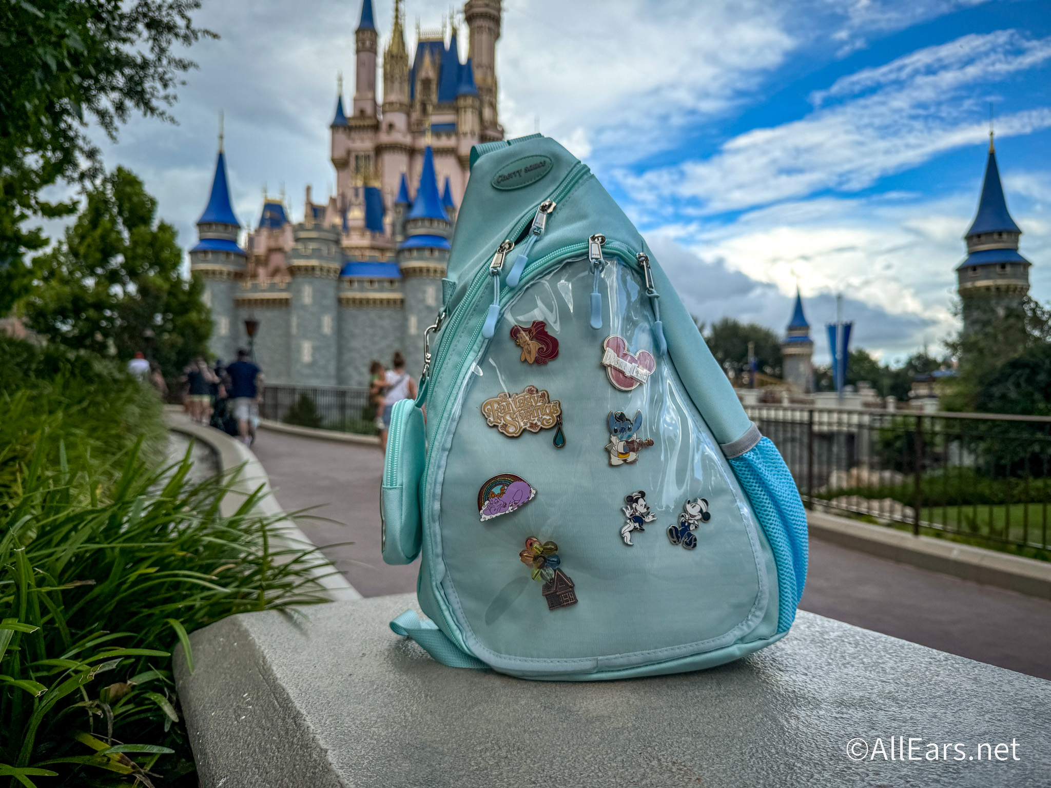 This Pin Display Backpack has a clear layer that keeps our pins on display without fear of losing them! The bag is small and compact, but it can fit everything we need without getting too heavy. We like that the strap is adjustable for a better fit!