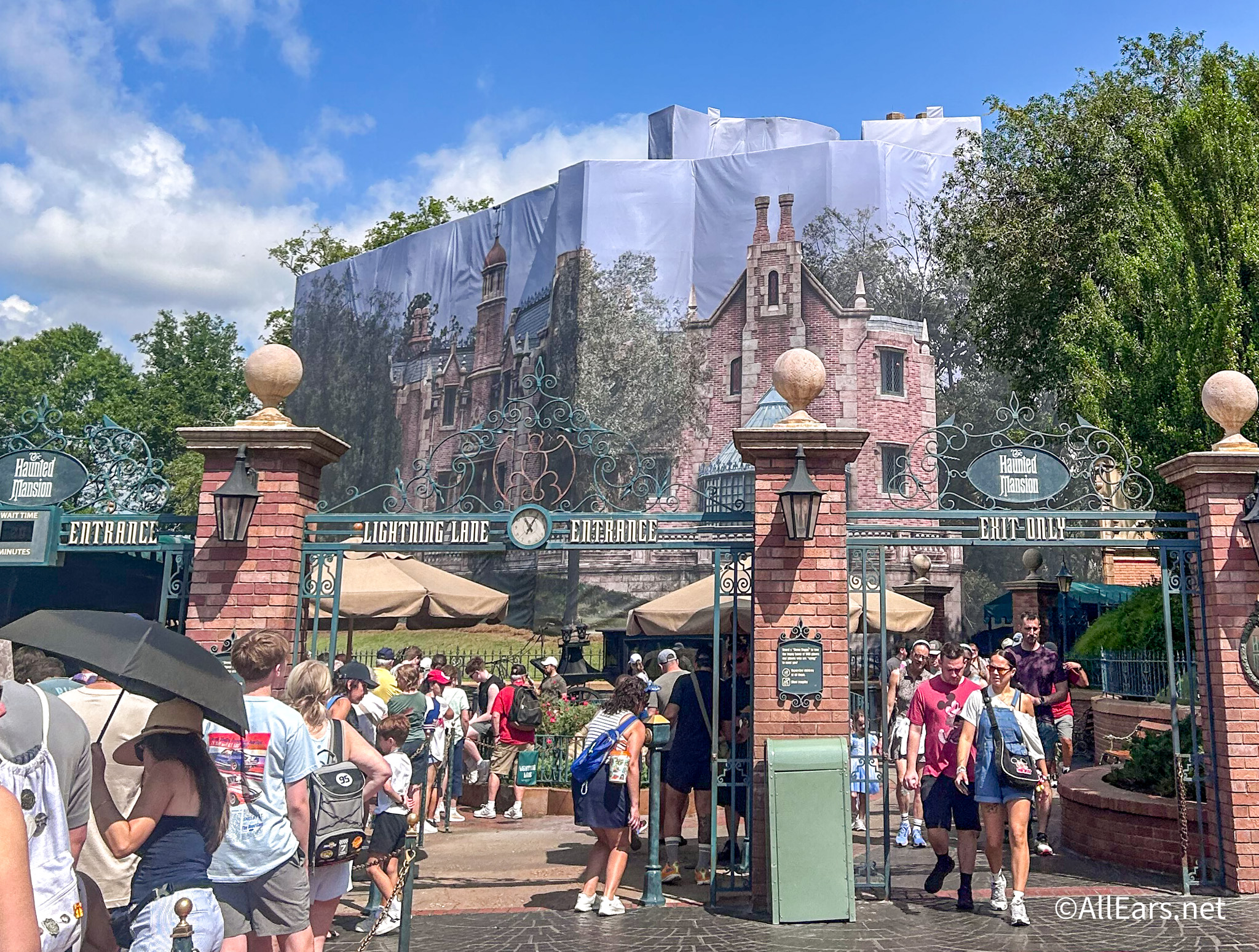 The Haunted Mansion at Magic Kingdom has been undergoing exterior maintenance for a while now, with a large scrim covering the facade. While we don’t love that we can’t see the original structure, we do think it’s hilarious when Disney puts up a scrim showing what is normally behind it. That begs the question: What is going on behind it?