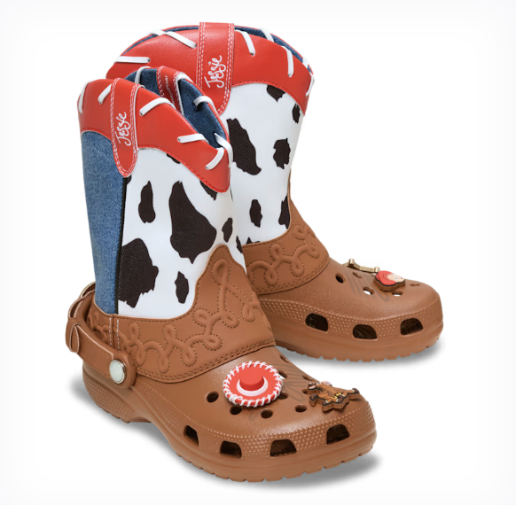 The Crocs have many different nods to the iconic character from Toy Story, Jessie. From the cowprint to red and white color resembling her hat, these Crocs are too cute to pass up.