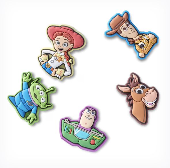 This Jibbitz pack comes with five iconic Toy Story characters, including Woody, Jessie, a green alien, Buzz Lightyear, and Bullseye.
