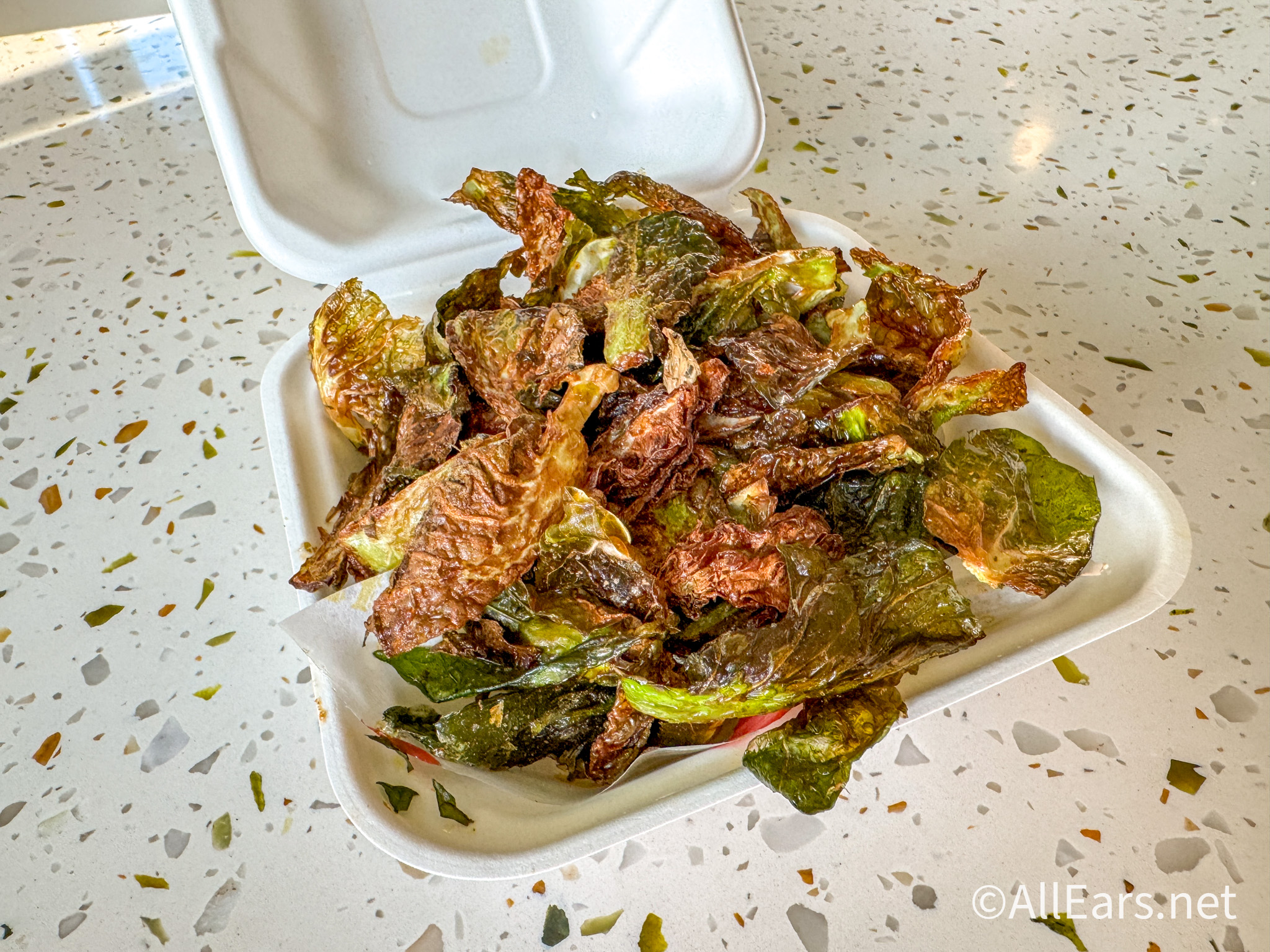 Our last stop was at GG’s Chicken Shop, which is at the Parkside Market at Downtown Disney. We wanted to grab three different sides, and the sides here for the price are amazing! Starting with the Crispy Brussels Sprouts for $6.00. They were the best bang for your buck, because the portion is pretty big. There is a lime chilli seasoning on top that is so incredibly tasty, zesty, and has a hint of spice that is perfection.
