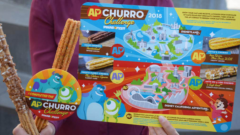Posted onFrom May 14 – June 8, Disneyland Annual Passholders can take the Churro Challenge. Purchase a map for $5 at select churro locations, and then visit the four different churro carts featuring special Pixar-themed churros to collect a sticker (churro purchase not required). After collecting all the stickers, redeem the map for a special Churro … Continue reading "AP Churro Challenge"