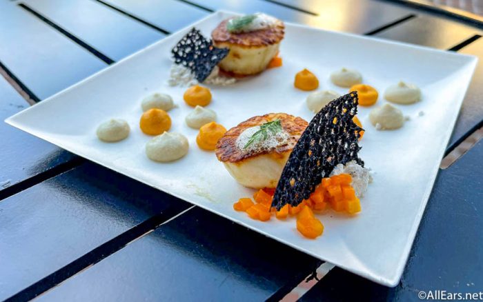 - Pan-Seared Scallop with Vanilla-Butternut Squash Puree, Brown Butter Cauliflower Puree, and Lime Foam (Wonderful Walk of Colorful Cuisine – Orange)