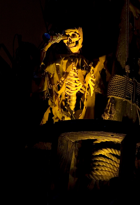 Posted onCopyright © 2008 Barrie Brewer, Nikon D50, 18-200VR lens, 2.5s shutter, f11 I’m sure most everyone recognizes this boney fellow. Perched high atop the sign for the Pirates of the Caribbean attraction in Adventureland, this long-gone swashbuckler keeps an eye out for possible riches to be had. In fact, he has two eyes out!