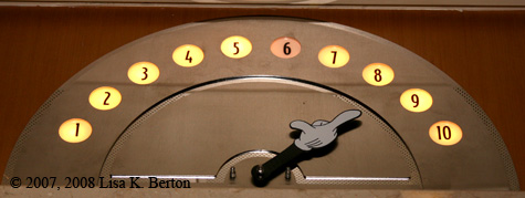 Posted onAs you recall, this week’s category is theming and so I submit 2 images for your viewing. The first, is found on the Disney Wonder, as Mickey’s hand points to the floor where the elevator is currently…elevating. The 2nd photograph is that of a metal identification tag, if you will, nailed into a post on … Continue reading "Theming Detail – Ahoy There!"