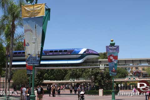 Posted onContributing photographer Jason of disneygeek.com sends us these photos from his trip to the parks on Friday, May 30, 2014. Monorail Blue passed by while at the tram stop then it stopped near the entrance to Disneyland for several minutes. It eventually started up again and made its way to Disneyland. No lines to get … Continue reading "Disneyland Resort Photo Update – 5/30/14"